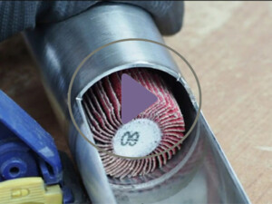 使用千叶轮或者砂带,通过直磨机或者大型抛光机,以长抛杆延伸进管内,带动千叶轮高速转动,达到内管抛光打磨的效果。